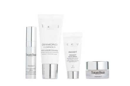 Receive deluxe samples of Inhibit High Definition Serum (0.1 oz.), Diamond Luminous Rich Luxury Cleanse (0.7 oz.), Inhibit Tensolift Neck Cream (0.16 oz.) and Inhibit High Definition Lifting Cream (0.16 oz.) with your $350 Natura Bissé purchase. A $130 value.