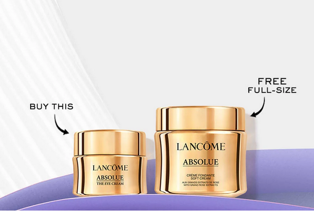 Lancome (NEW) Buy one full-size product, get one free, use promo code “SUNSET” up to $165 value. Ends 9/2.