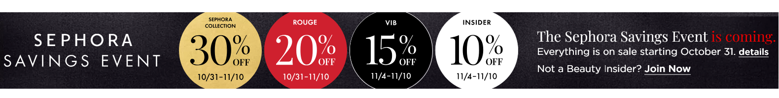 Sephora (NEW) Sephora Fall Savings Event 2025 is coming 10/31 or 11/4 for everyone. 20% COUPON IS VALID FOR ROUGE MEMBERS 10/31-11/10, 2025; 15% COUPON IS VALID FOR VIB MEMBERS 11/04-11/10, 2025; and 10% COUPON IS VALID FOR BEAUTY INSIDER MEMBERS 11/04-11/10. Receive a Augustinus Bader trial size with any $40 merchandise purchase code: AGRICHCREAM. Orders over $30 choose 1 free gift, orders over $55 choose 2 free gifts, or orders over $80 choose 3 free gifts, with promo code YESMORE (app exclusive). Spend more get more fragrance, get 2 samples with $25 purchase, 4 samples with $50 purchase, or 6 samples with $75 purchase, with promo code TRYMORE. Pick a FREE Sample Bag with any $55 purchase use code GETASET.