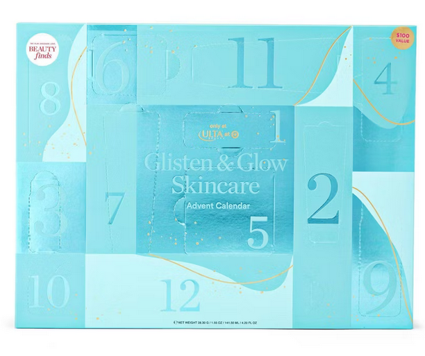 Target x Ulta Beauty Holiday 2025 Skincare Advent: $40 ($100 value). Unwrap the joy of surprise skincare! The Glisten & Glow Skincare Advent Calendar features 12 days of products to hydrate, brighten, moisturize, and refresh your skin. Valued at $100, it includes favorites from OSEA, Philosophy, TULA Skincare, Shiseido, Origins, MAËLYS, First Aid Beauty, COSRX, Peach & Lily, StriVectin, and Clinique, all curated for a festive skincare experience.