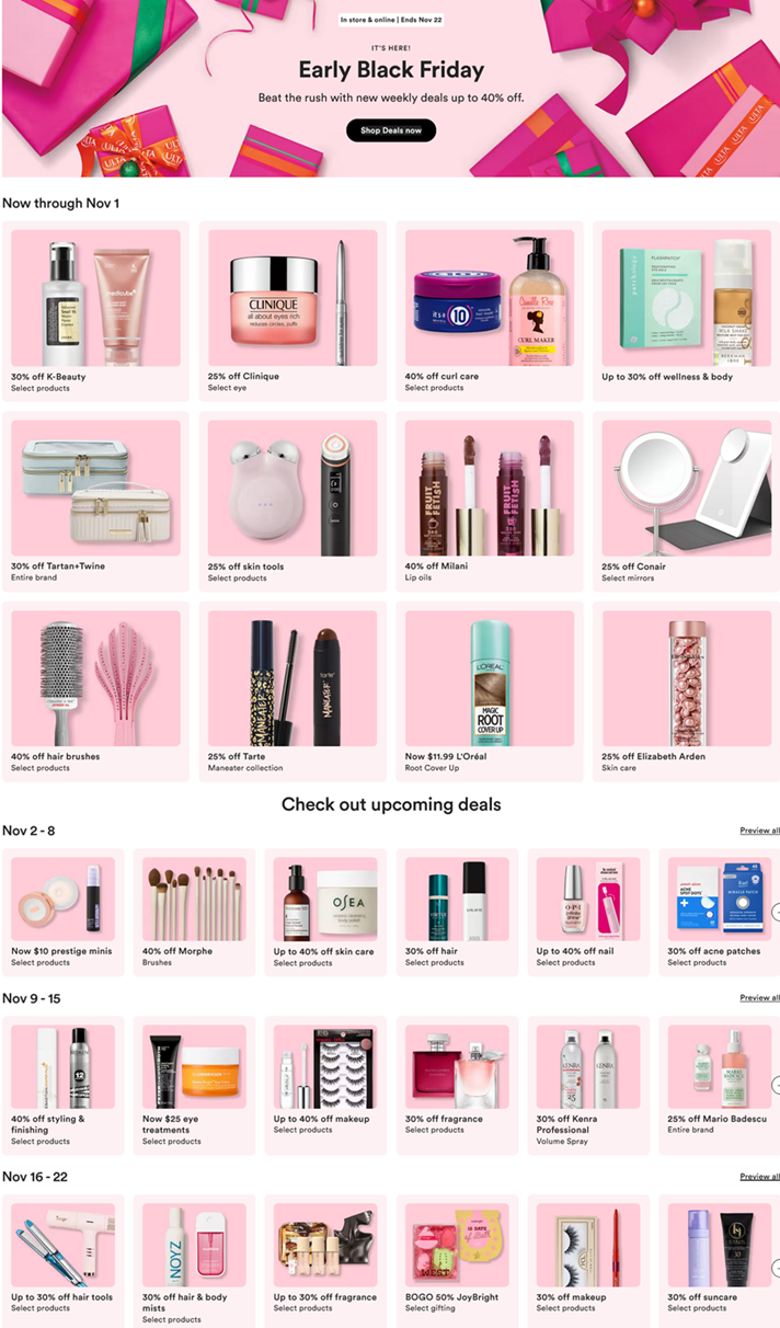 Ulta Early Black Friday 2025 is here: ulta.com/promotion/black-friday. New deals every week through Nov 22.