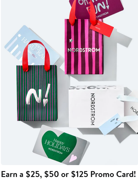 Fine print here. Gift more and earn up to a $200 promo card when you use your Nordstrom card for your holiday shopping. For a Limited Time!