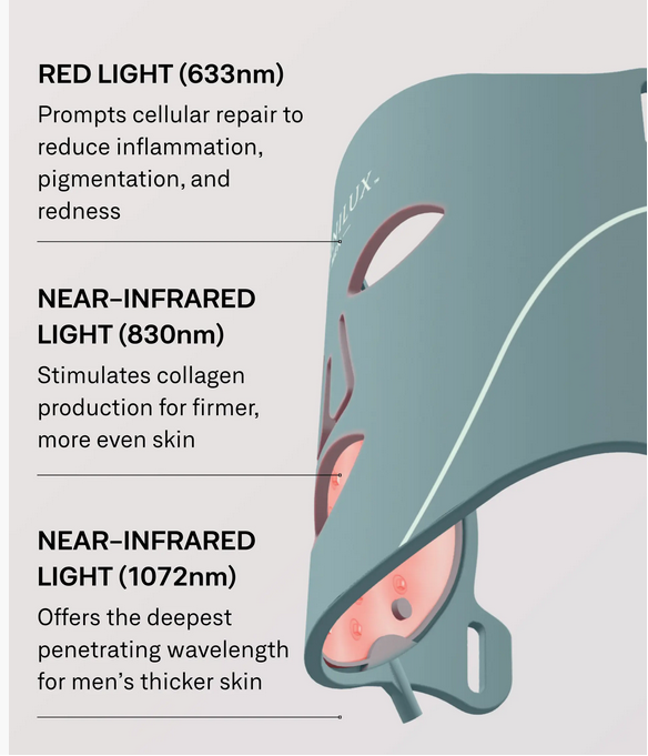 Omnilux Men is the first LED light therapy mask designed specifically for Men’s skin. Based on the world’s leading Omnilux Medical light therapy technology, Omnilux Men is a Nordstrom-exclusive, flexible, portable home use device that is engineered with an additional wavelength of 1072nm near-infrared light for deeper penetration into men’s 25% thicker skin.