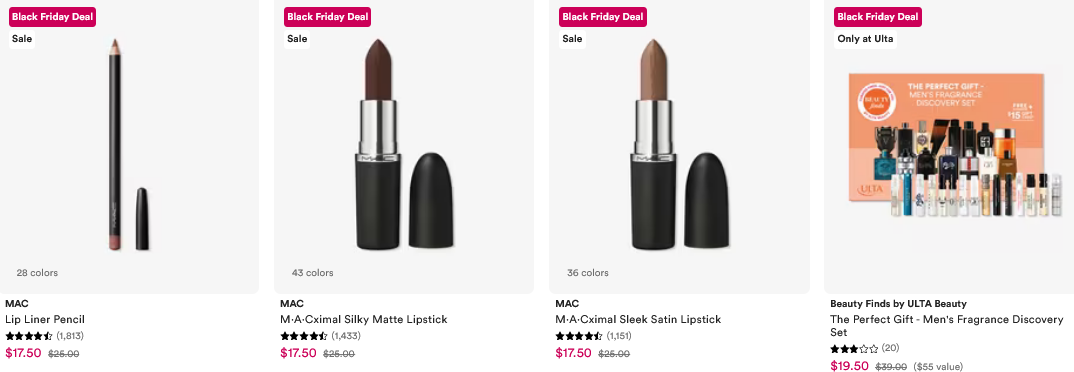 - Ulta Black Friday $15 and under, $25 and under.