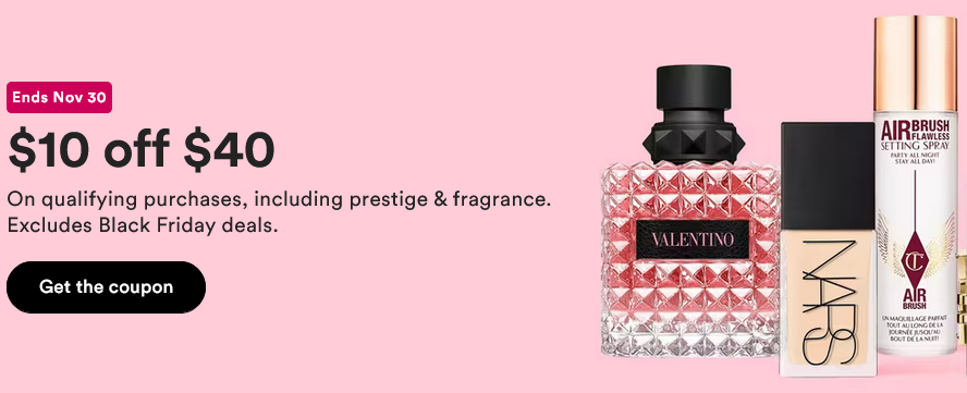 - Get $10 off $40 purchase with code THANKS, including prestige brands and fragrances, ends 11/30, excl Black Friday deals.