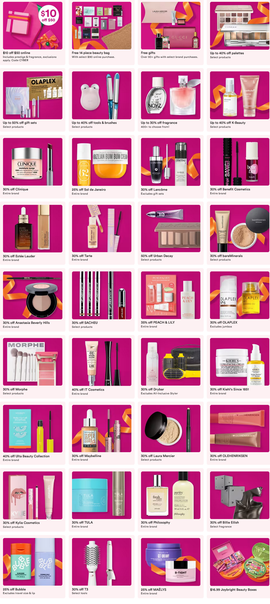 Ulta –Cyber Monday is here online at Ulta.com/promotion/cybermonday. Up to 40% off makeup palettes, 30% off entire Estee Lauder, 30% off entire Lancome (excl kits) and more.