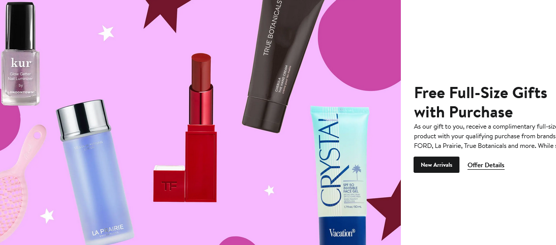 As our gift to you, receive a complimentary full-size beauty product with your qualifying purchase from brands like TOM FORD, La Prairie, True Botanicals and more. While supplies last.