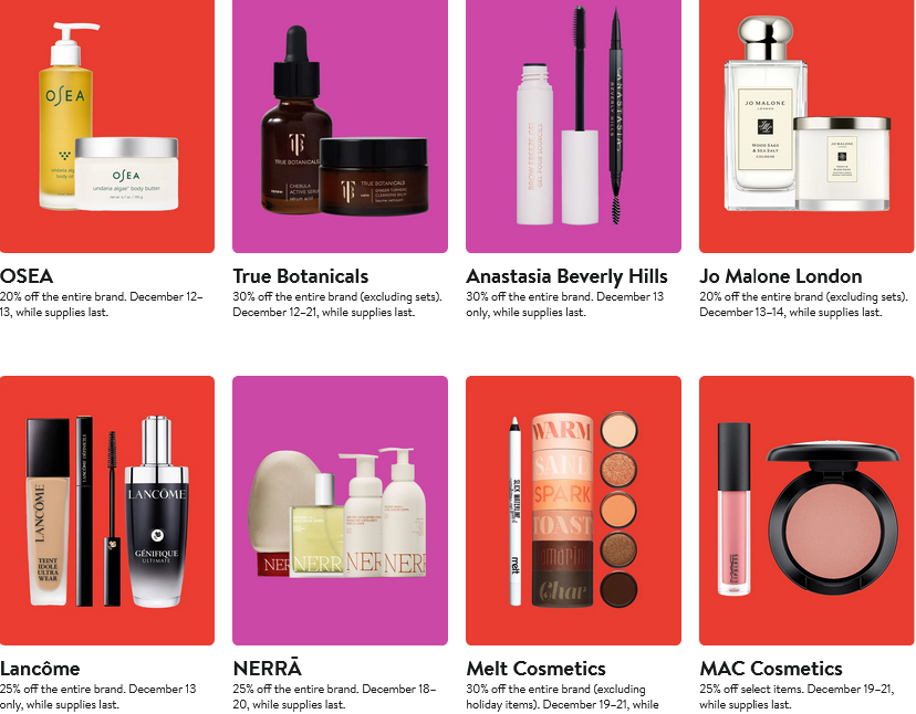 - La Prairie —20% off select items. December 7–13, while supplies last.