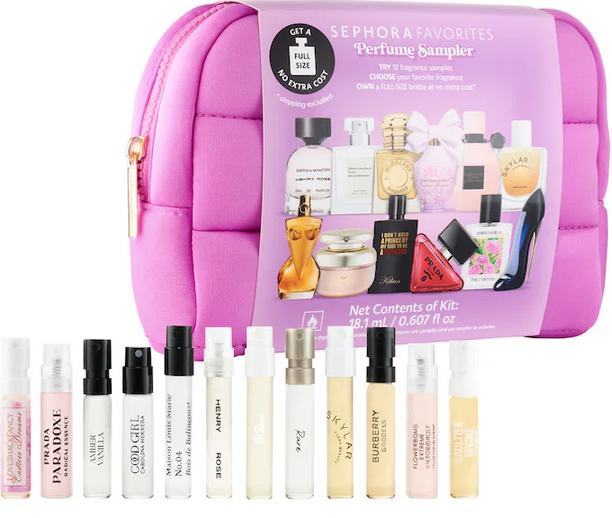 Find the best value with this perfume sampler set. Perfectly giftable, this set comes with 12 sample-size fragrances from warm floral perfumes to marshmallow perfumes. Choose your favorite and then take the included scent certificate to any US Sephora store** or sephora.com to redeem for a full size (1 oz to 2.5 oz) of your favorite featured fragrance at no extra cost.*