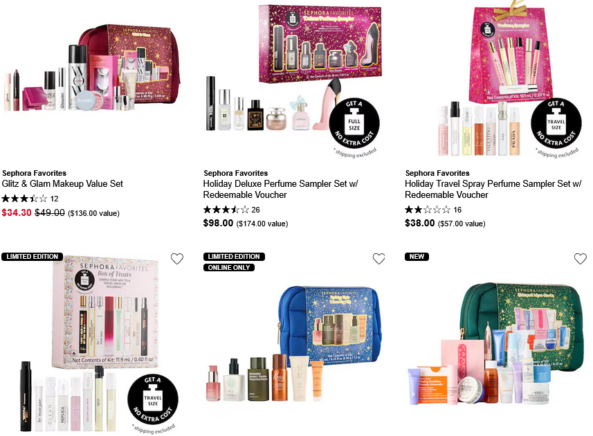 Sephora – Sephora exclusive products (300+ items) including 5pc Sol de Janeiro Spritz the Season Cheirosa Perfume Mist Gift Set ($39), Merit Cream Blush ($30), KAYALI VANILLA ($29) and more. You can also get your hands on mixed-brand beauty gift sets called Sephora Favorites Kits.
