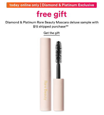 - Free Diamond & Platinum Rare Beauty Mascara deluxe sample with $15 shipped purchase!