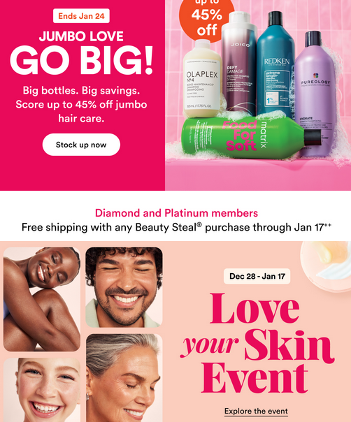 - In addition, Ulta Jumbo Love Event is here, get 45% off hair products.