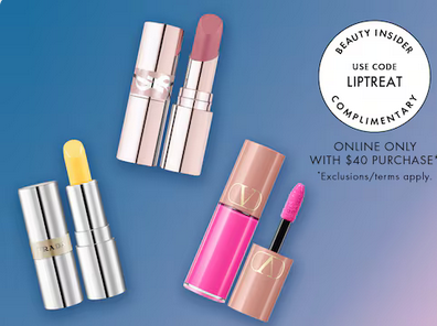 Sephora (NEW) Choose a Complimentary Lip Trial Size with $40 purchase. Pick one of three from Prada, Yves Saint Laurent, or Valentino. Use code LIPTREAT. Choose a Skincare trial size with any $30 purchase Code: PICKME.