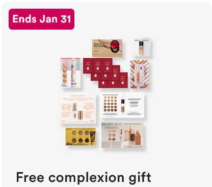 Free choice of 9 piece complexion sampler with $50 makeup purchase (valid thru Jan 31). Ulta App deals– 30% off select complexion.