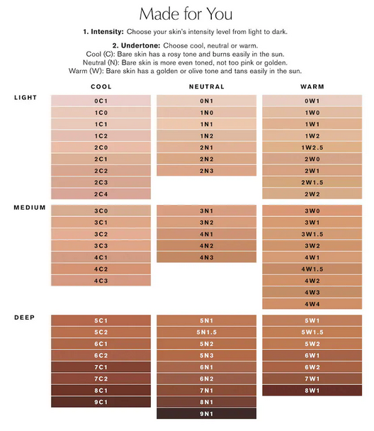 – Neutral (N) undertones: Bare skin is more even toned, not too pink or golden