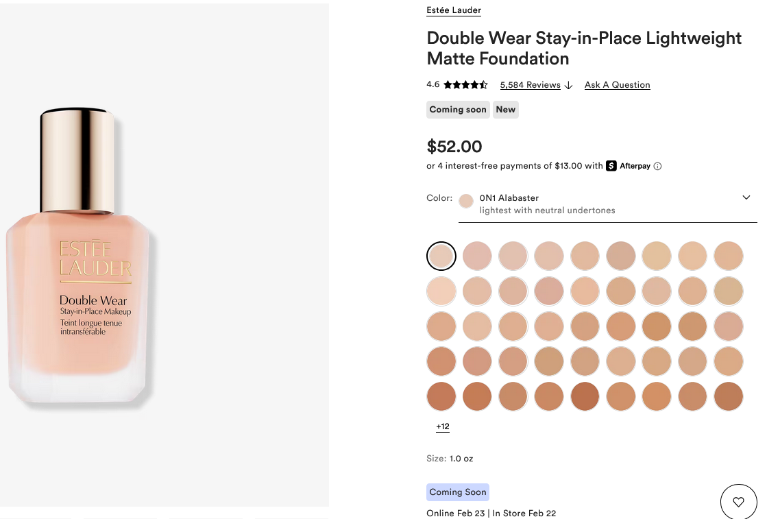 The new Estée Lauder Double Wear Foundation is launching in the U.S. on February 23, 2026. The updated formula of the #1 best-selling foundation in the U.S. now features a dimensional matte finish, 36‑hour color‑true wear, and upgraded Polymer Mesh Matrix Technology that makes it transfer‑proof, waterproof, and gym-proof. The shade range remains 57 shades, and the price stays the same at $52! Several U.S. retailers already have preview pages live: