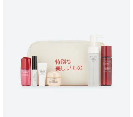 Receive deluxe samples of Perfect Cleansing Oil (1.3 oz.), Eudermine Activating Essence Lotion (1 oz.), Ultimune Power Infusing Serum (0.33 oz.), Full Lash Serum (0.07 oz.), Benefiance Wrinkle Smoothing Eye Cream (0.17 oz.) and Benefiance Wrinkle Smoothing Cream (0.53 oz.) in a canvas cosmetics pouch with your $85 Shiseido purchase. A $108 value.