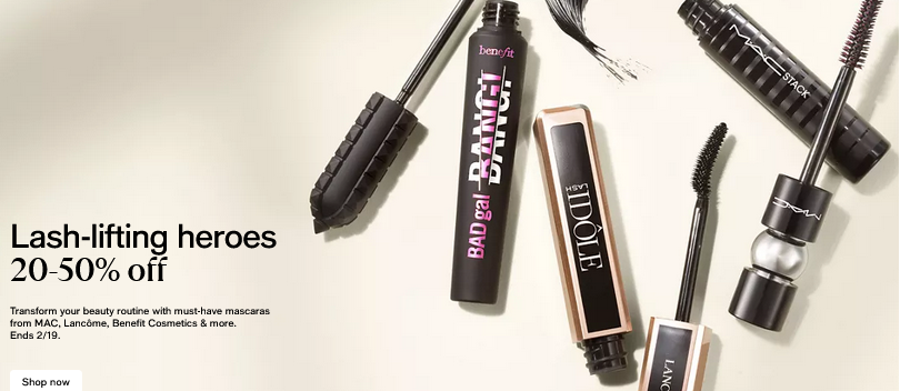 Macy’s (NEW) National Lash Day Sale, get 20% – 50% off Mascaras from 50% off Urban Decay, 40% off Tarte, 30% off MAC, 20% off Lancome, Benefits and more, ends Feb 19.