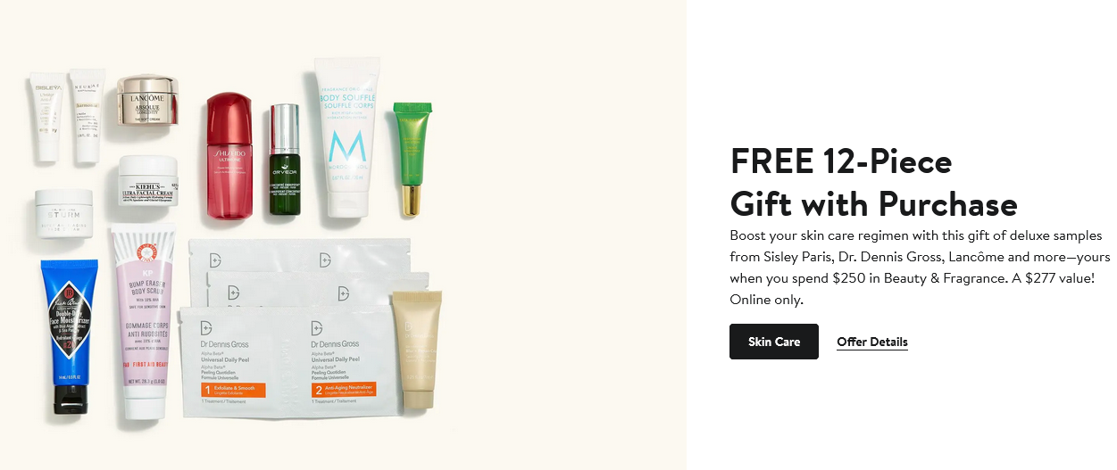 They have really good stackable luxury beauty gift with purchase offers from ARMANI beauty, Dior and LA MER.