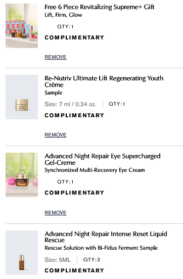 Spend $135, Choose a Free Full-Size Best Seller: full-size Advanced Night Repair Eye Gel-Creme promo code EYECREAM or Re-Nutriv Intensive Smoothing Hand Crème promo code HANDCREAM. Combined with the above gifts, up to a $350 value.