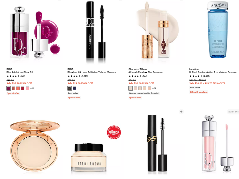 Get 15% off luxury beauty incl Dior, Charlotte Tilbury and more – 1300+ items.