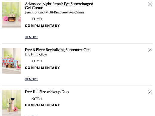 Spend $135, Choose a Free Full-Size Best Seller: full-size Advanced Night Repair Eye Gel-Creme promo code EYECREAM or Re-Nutriv Intensive Smoothing Hand Crème promo code HANDCREAM. Combined with the above gifts, up to a $350 value.