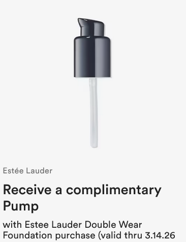 - Estee Lauder at Bloomingdale’s. Plus, get a free Double Wear Foundation Pump with your foundation purchase ($15 value).