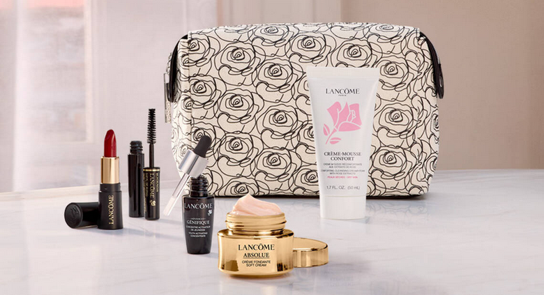 Lancome gift with purchase at Lancome LIVE NOW February 24-27 and while supplies last. Receive a 6-piece skincare gift set with orders over $125, use promo code ROSY (a $135 value). Must login as a member. Get 25% off orders over $100 or 30% off orders over $200.