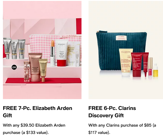 Get $10 Star Money per $40 on Clarins. Plus, Free 6-Pc. gift with any $85 Clarins purchase (A $117 Value). Free Clarins Face Mask gift with any $125 Clarins purchase (A $132 Value). Free Body Firming Cream with any $150 Clarins purchase (A $169 Value).