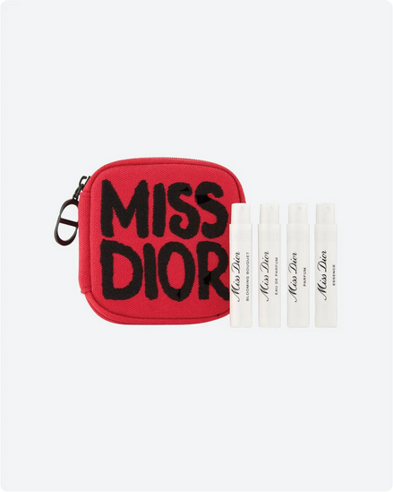 Receive a cosmetics pouch and deluxe samples of Miss Dior Blooming Bouquet Eau de Toilette, Miss Dior Eau de Parfum, Miss Dior Parfum and Miss Dior Essence (0.03 oz. each) with your $180 Dior women’s fragrance purchase.