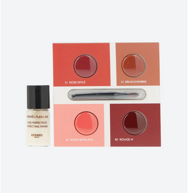 Receive deluxe samples of Plein Air Moisturizing & Unifying Perfecting Primer (0.1 oz.) and Rouge Hermès Silky Lipstick Shine (single use: Rose Epicé, Brun d’Ambre, Rose Himalaya & Rouge H) with your $145 Hermes beauty purchase (excluding gift sets).