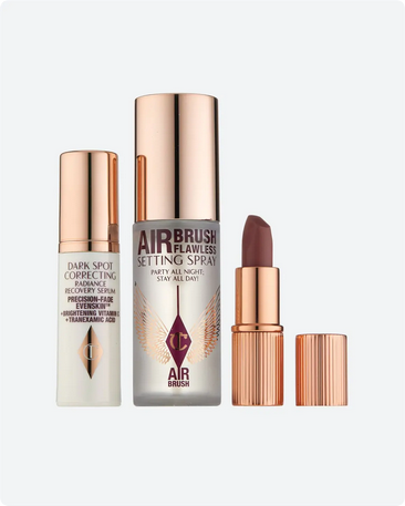 Receive deluxe samples of Matte Revolution Lipstick in Pillow Talk Medium (0.03 oz.), Dark Spot Correcting Radiance Recovery Serum (0.15 oz.) and Airbrush Flawless Setting Spray (0.5 oz.) with your $125 Charlotte Tilbury purchase. A $28 value.