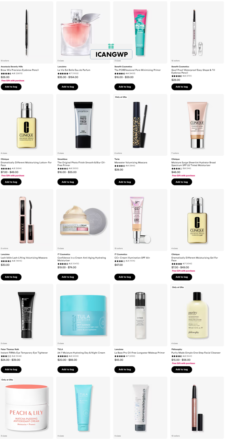 Visit New Arrivals, Skincare. Visit Ulta Buy More Save More list page. Ulta’s Best Seller Sale Page. See Ulta Point Chart and Membership benefits.