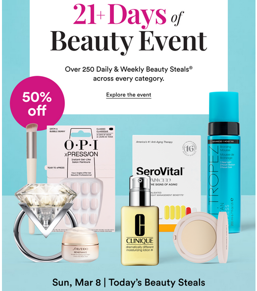 Ulta‘s 21 Days of Beauty Event is here through March 26, 2026, offering 50% off 250+ daily beauty steals, including Weekly Steals at ulta.com/21-days-of-beauty. The bi-annual Ulta 21 Days of Beauty Event is one of the retailer’s biggest sale events of the year.