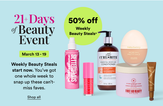 Ulta‘s 21 Days of Beauty Event is here through March 26, 2026, offering 50% off 250+ daily beauty steals.
