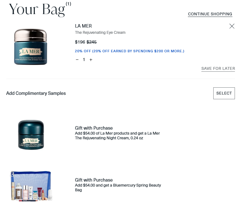 Both 20% off and free gift with purchase will be automatically added to your cart: