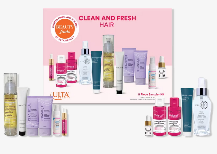 Ulta (NEW) Beauty Finds by ULTA Beauty Clean And Fresh Hair $29 ($83 value). Clean And Fresh Hair is your go-to kit for effortlessly refreshed strands—anytime, anywhere. Featuring a mix of travel and full-size hair care essentials, this curated set keeps hair feeling clean, light, and healthy from wash day to on-the-go touch-ups. Fresh hair starts here.
