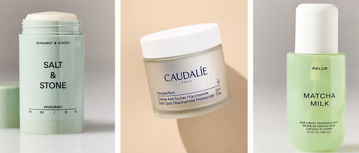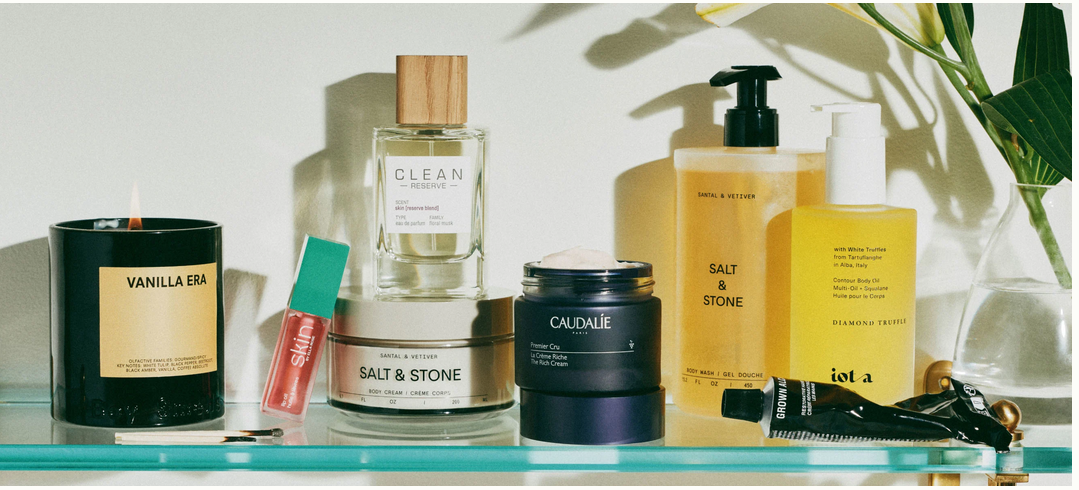 Beauty Brands: Phlur, Salt & Stone, Caudalie, Sunday Riley, Anastasia Beverly Hills, Cooluli, Lavanila, Darphin, Kopari, Lavanila, Tocca, Pixi, PMD, Mario Badescu, This Works, Malin + Goez, Kai, Peter Thomas Roth, Caudalie, 8G, skyn ICELAND, Erno Laszlo, NuFace, Slip