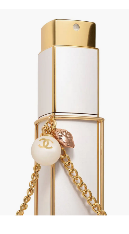 The refillable COCO MADEMOISELLE Eau de Parfum Purse Spray has been designed to resemble a piece of jewelry that can be fastened and unfastened. Featuring a pearl-like glass bead and a camellia charm, the accessory’s golden chain can be worn around the wrist. The on-the-go format lends itself to spontaneous use and is ideal for enhancing the fresh, ambery notes of the fragrance throughout the day. Limited edition.