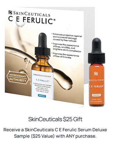 - Dermstore — Earn 2x Points on SkinCeuticals. Double points = 10% back in rewards to spend on future purchases. Plus, receive a SkinCeuticals Resveratrol BE 4ml ($23 Value) when you spend $175 on the brand. Get a free C E Ferulic Serum Deluxe Sample ($25 Value) with any purchase. Choose a free SkinCeuticals gifts (valued at $93) when you spend $250 or more on SkinCeuticals. Use promo code SKINCGIFT. See four holiday 2026 Best of Dermstore Sets (20% – 30% off).