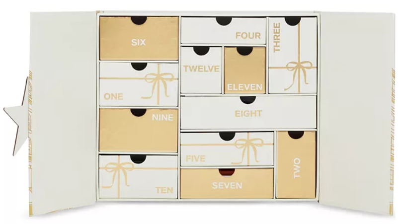 - Kitsch North Pole Post 12-Day Advent Calendar for $119. It contains 12 full sizes.