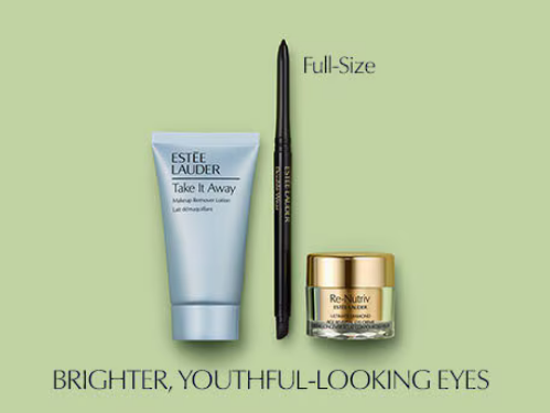 Get More! Spend $90 or more on Estee Lauder and receive a trio for eyes with makeup remover, eye cream, and a full-size eyeliner.