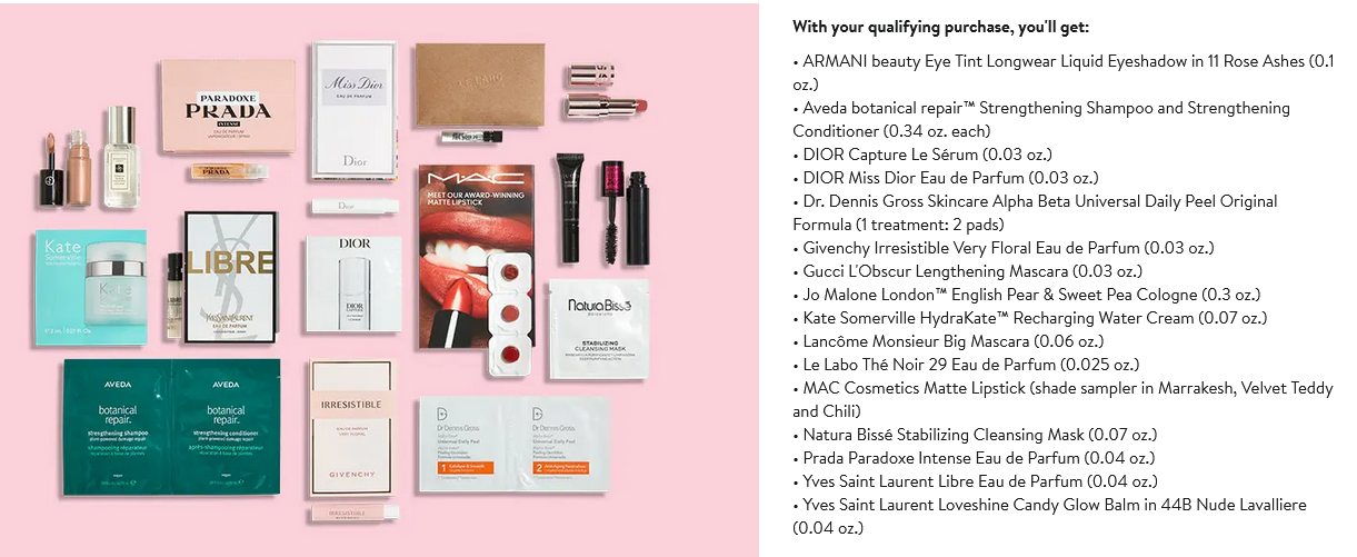 It’s combined with Nordstrom’s ongoing offers- free Full-Size Beauty Gifts with Purchase offers.