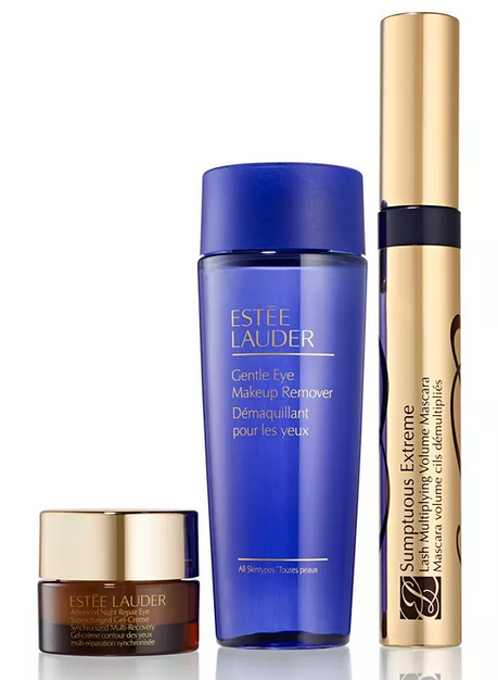 Includes a full-size Sumptuous Extreme Mascara, plus deluxe travel-size Double Wear Infinite Waterproof Eyeliner & Advanced Night Repair Eye Gel-Creme.