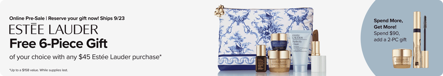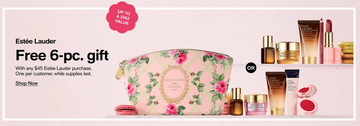 Estee Lauder gift with purchase at Estee Lauder LIVE NOW February 11, 2025 or while supplies last. Choose a free 6-Piece Estee Lauder Gift (A $124 value) with your $50 purchase. Plus, get a free Estee Lauder gift trio with any $90 purchase, a $74 value. Spend $135, choose a free full-size (a $247 combined value) – promo code required.