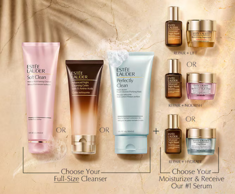 Estee Lauder VALENTINE’S DAY EXCLUSIVE. Build A Custom Set and get 20% off. Build your skincare set by choosing a cleanser or treatment, serum and moisturizer.