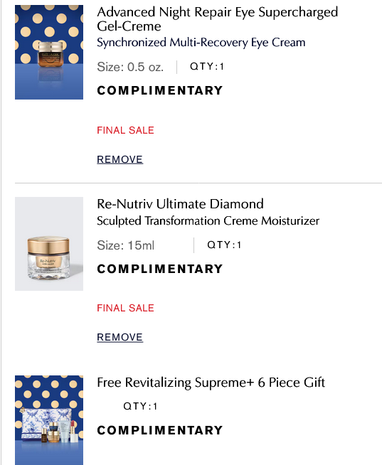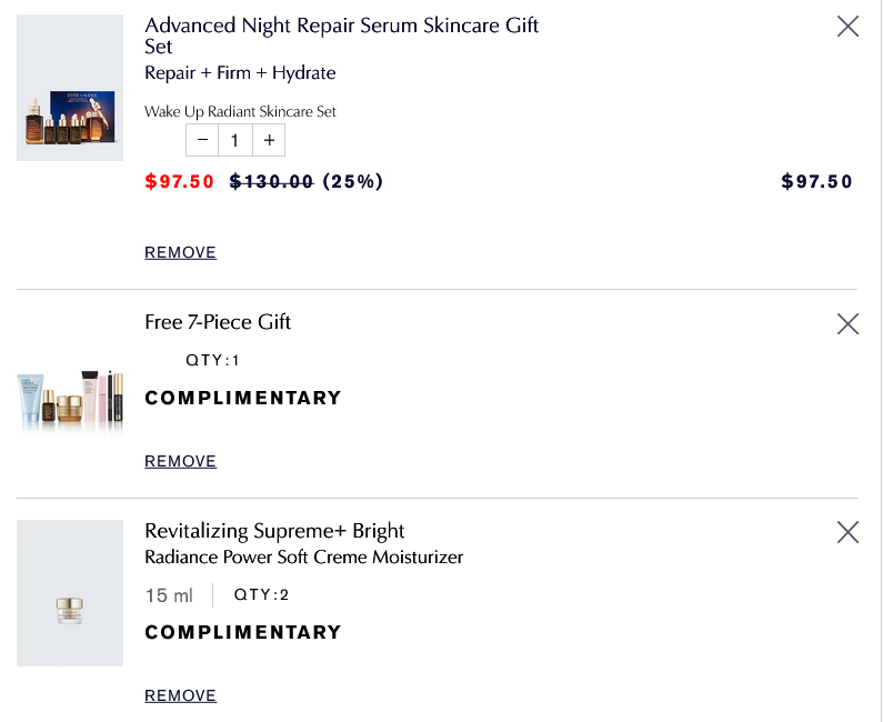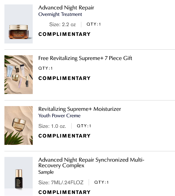- Estee Lauder gift with purchase at NORDSTROM LIVE NOW December 1, 2025 and while supplies last. Receive a cosmetics bag and deluxe samples of Take It Away Makeup Remover Lotion (1 oz.), Advanced Night Repair Synchronized Multi-Recovery Complex Serum (0.23 oz.), Revitalizing Supreme+ Youth Power Cream Moisturizer (0.24 oz.) and Revitalizing Supreme+ Youth Power Eye Cream (0.17 oz.) with your $75 Estée Lauder purchase. Get a free 9-piece luxury beauty bag with any $175 beauty purchase, valued up to $181. Including all ongoing beauty sale here (3000+ items). Plus, explore all Nordstrom beauty gift with purchase.