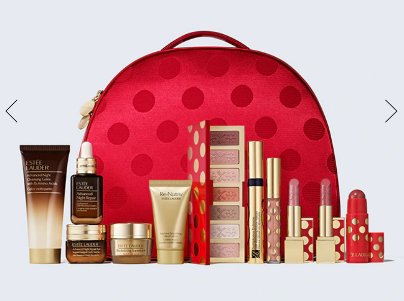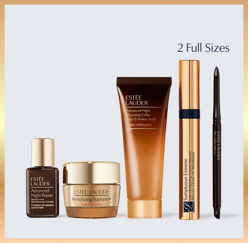 Estee Lauder gift with purchase at Estee Lauder LIVE NOW December 4-8, 2025 or while supplies last. Get a Free 6-Piece Gift with any $75 Estee Lauder purchase. A $152 Value. Plus, with any $135 purchase, get a free full-size Sumptuous Extreme Mascara and a duo gift. Combined with the above gift, over a $233 value. Spend $175 add a free full size Advanced Night Repair Eye Supercharged Gel-Creme. Total value $309.