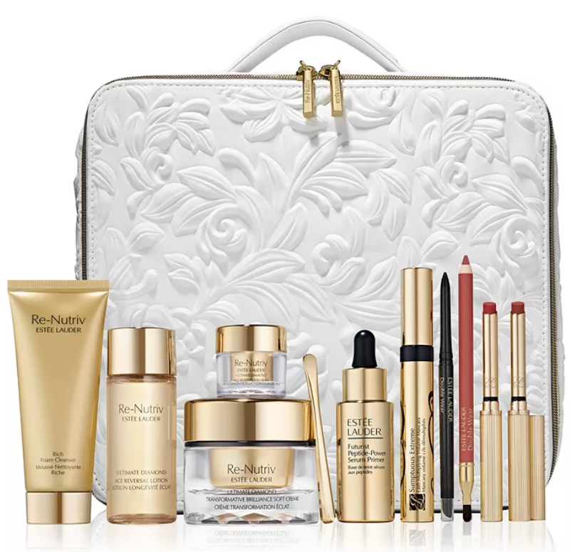 - Estee Lauder gift with purchase at Ulta LIVE NOW December 11-27, 2025 or while supplies last. Receive a complimentary 6 Piece Gift with $60 Estée Lauder purchase. Plus, Free 12 Piece Fragrance Gift with select $90 shipped purchase. Receive $10 off a qualifying $40 purchase or $20 off a qualifying $100 purchase use code CHEER, expires Dec 14 (incl prestige brands and fragrances) –printable version coupon here. Estee Lauder Glowing All Out Gift Set is priced at $75 ($240 value), only at ULTA.