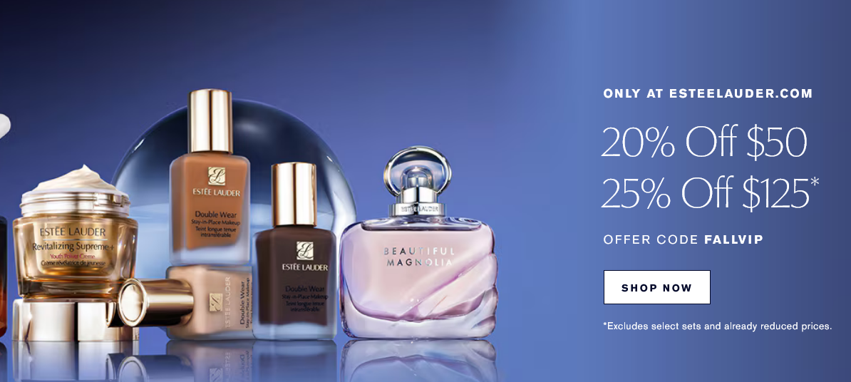 - Estee Lauder gift with purchase at Estee Lauder LIVE NOW December 11, 2025 and while supplies last. Get a FREE 6-Pc. Beautiful Magnolia Gift With $75 Estee Lauder Fragrance purchase (A $100 Value). Get 20% Off $50, 25% Off $125 purchase. Plus, spend $90 get a free 6-piece gift including Re-Nutriv Diamond Brilliance Soft Creme (7ml) and more ($192 value) – promo code required.